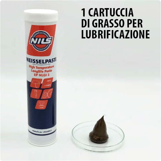 La compressione diretta dell’azoto, caricato nella testata superiore, incrementa l’energia di impatto del pistone.