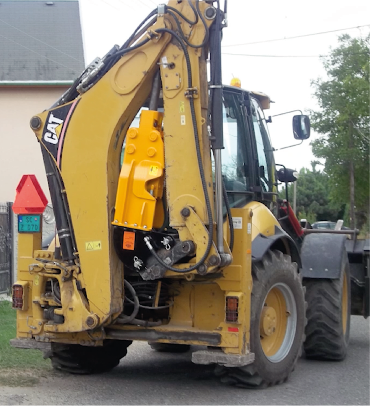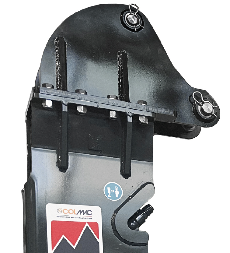 La forma particolare della sella permette di ripiegare il martello demolitore all’interno del braccio della terna. L’adattatore T può essere facilmente sostituito con una sella standard per consentire l’attacco del martello anche su un escavatore.